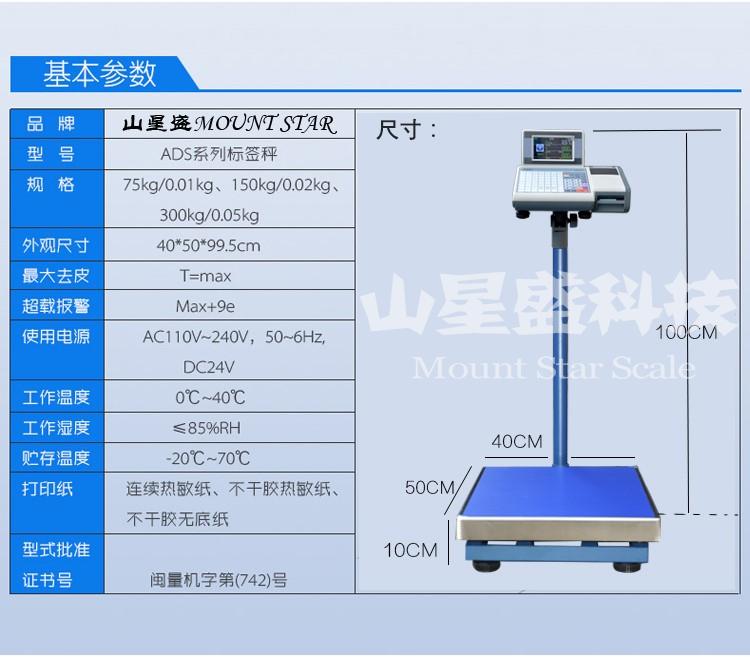 標簽打印電子秤技術參數: